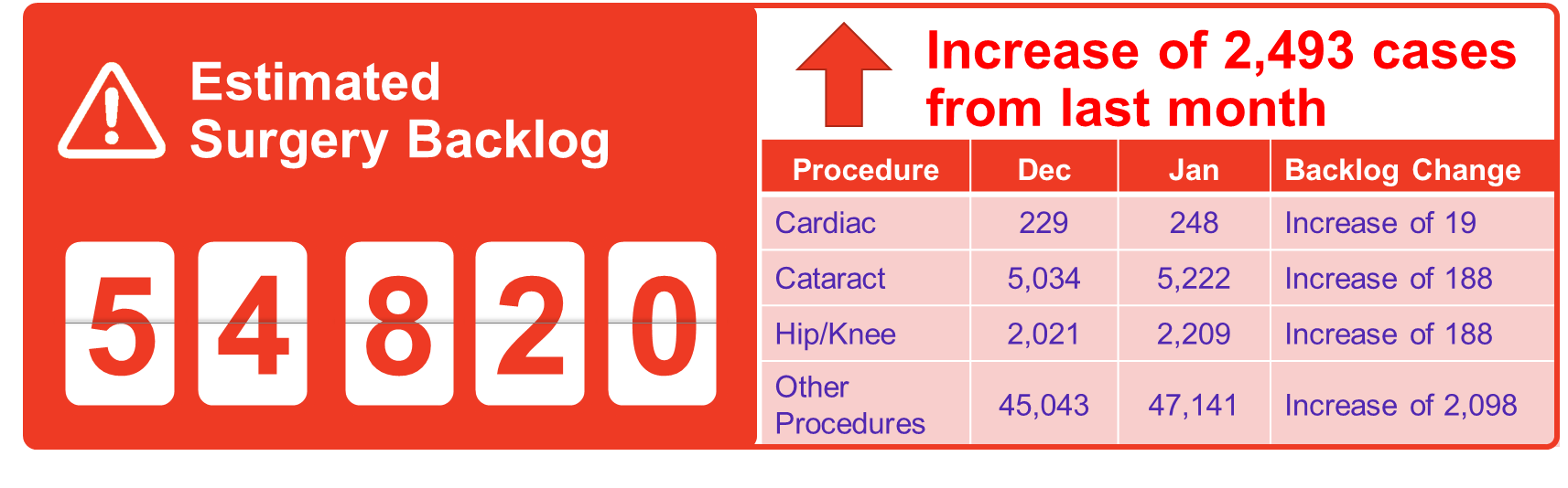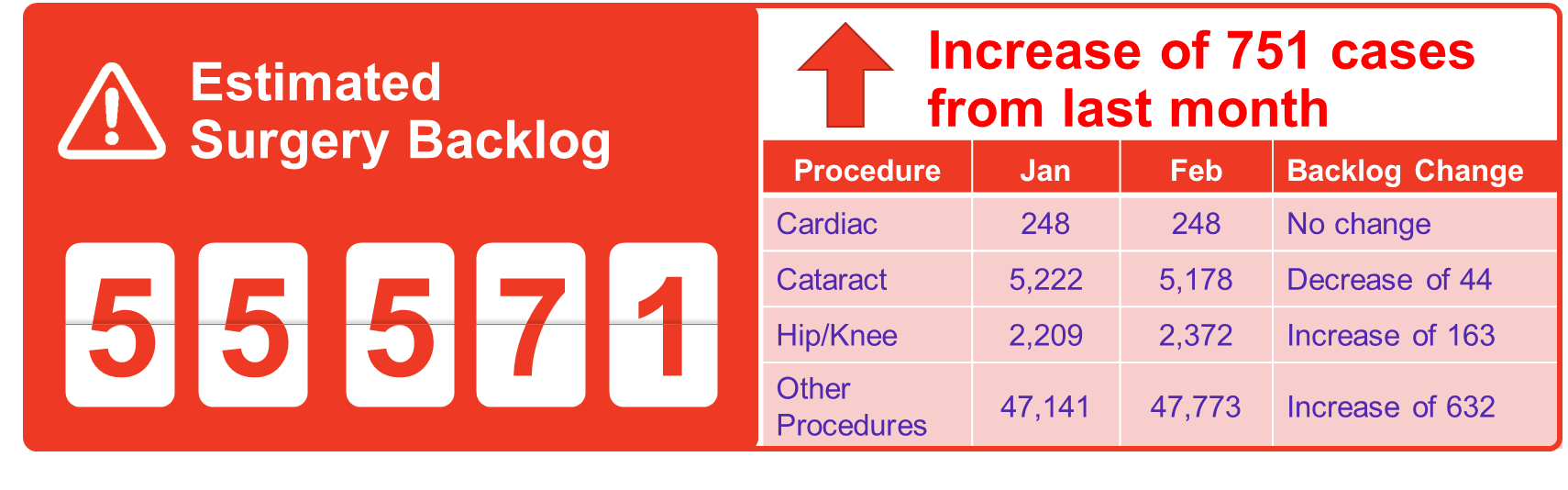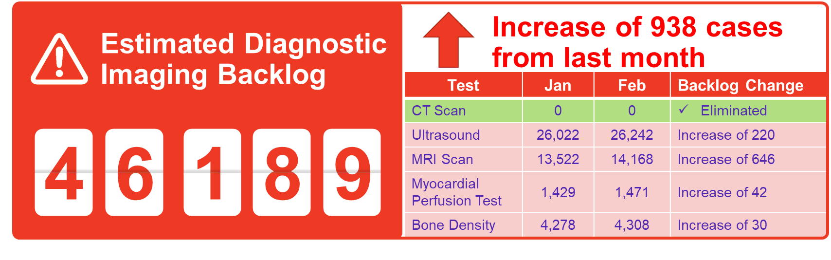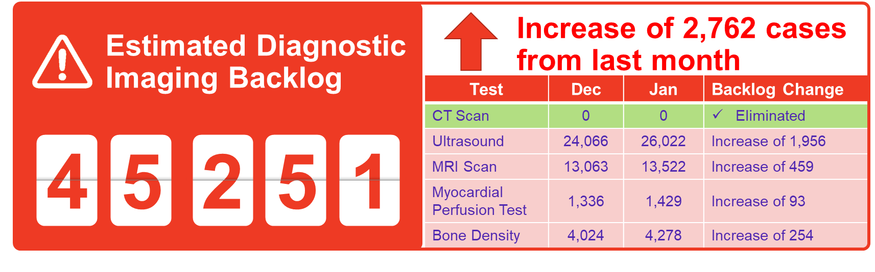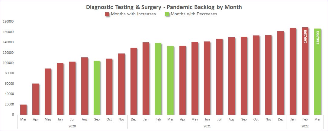 The surgery and diagnostic imaging estimates reported above do not include any backlog of wait list that existed before the COVID-19 pandemic was declared in March 2020. The backlog estimates only capture the pandemic period.